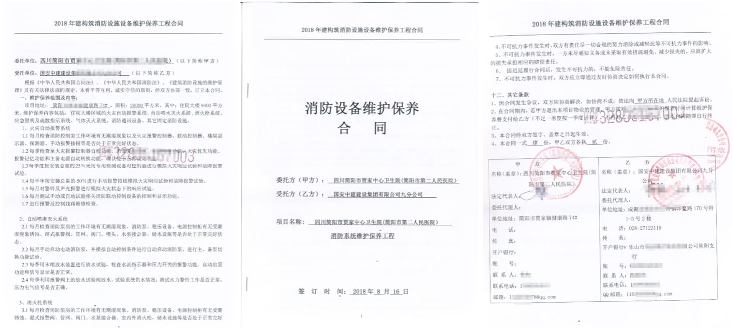 1,合同名称:消防设备维护保养合同